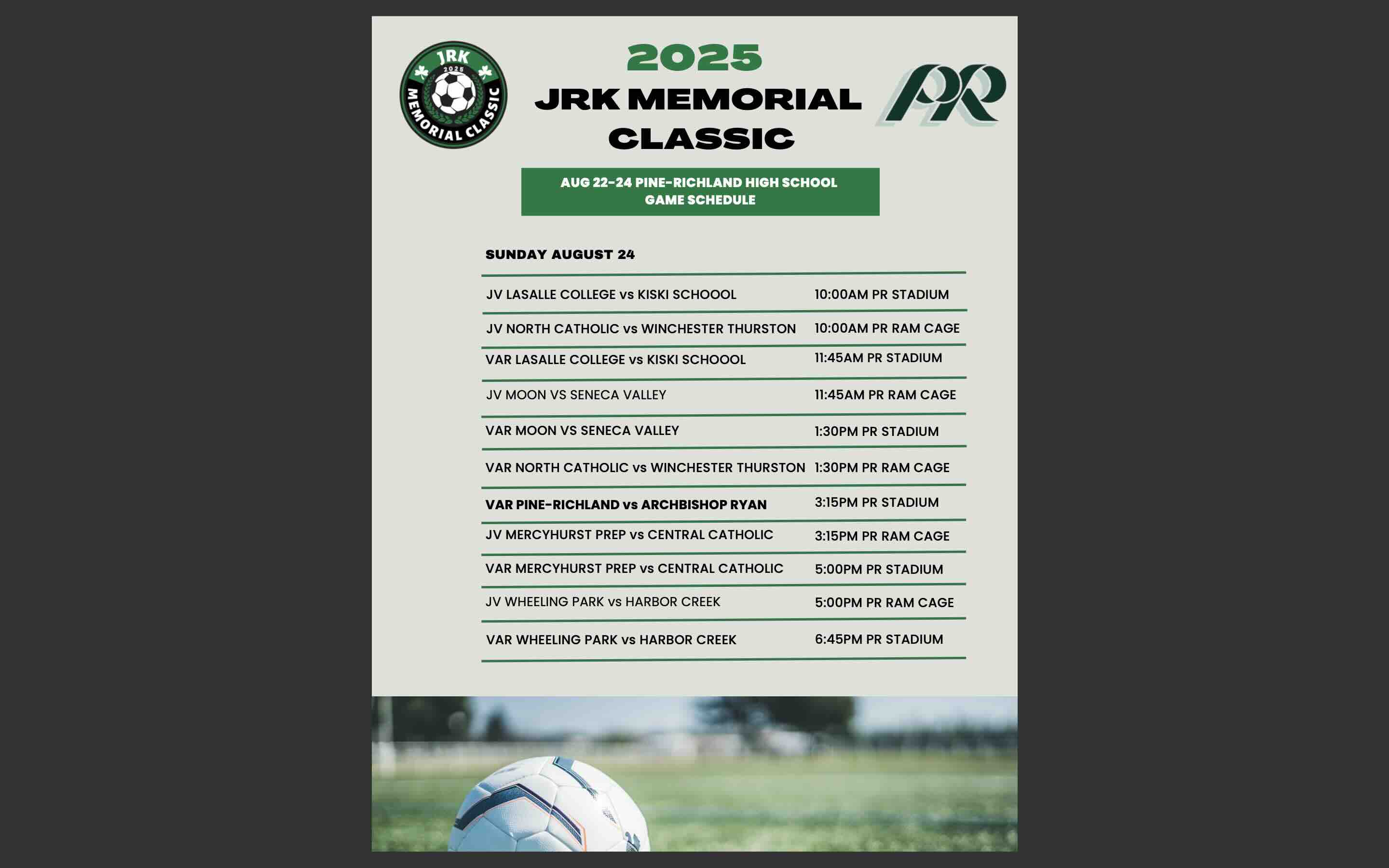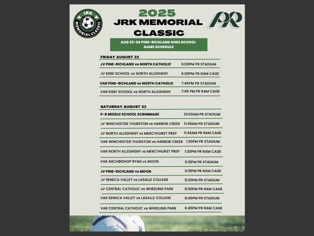 Each year since inception, a portion of the proceeds from the JRK Memorial Classic event along with donations from the Pine-Richland Boys Soccer Boosters and our generous sponsors, has been contributed to the Scholarship Fund. To date, the JRK Scholarship Fund has awarded over $105,000 in scholarships to 50 graduating senior soccer players.